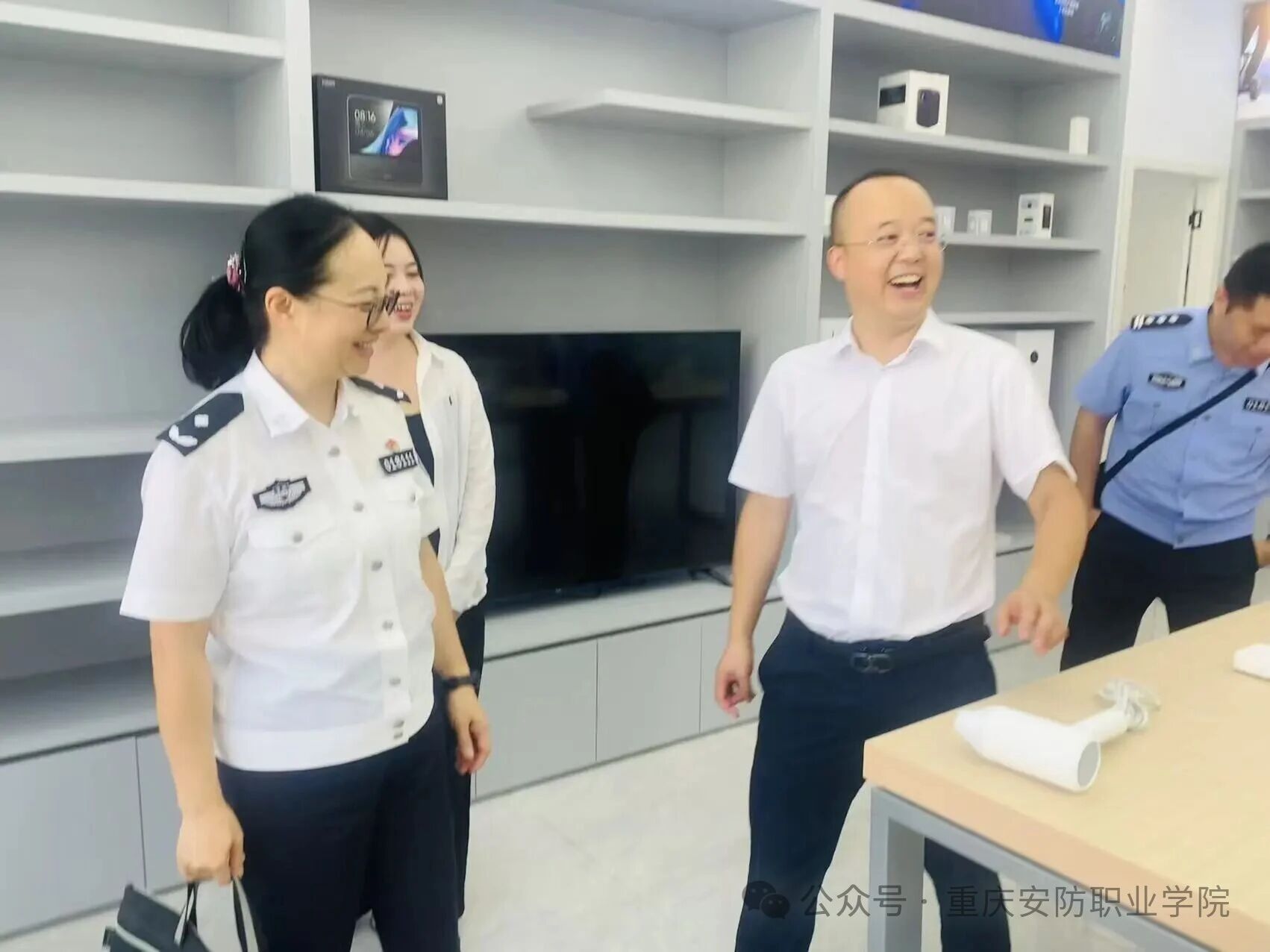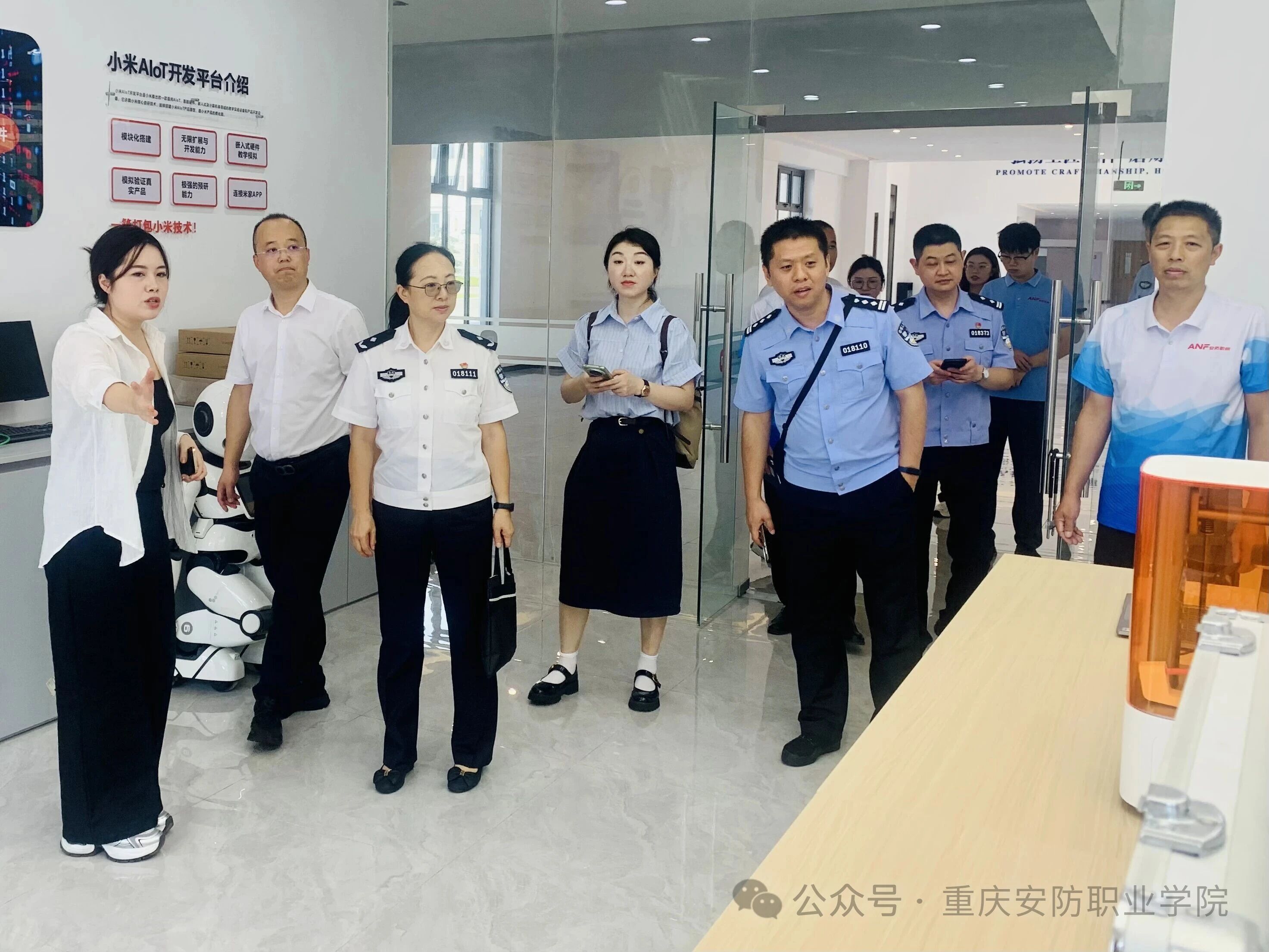 交流伊始,重庆安防职业学院领导陪同重庆警察学院专家团队,参观小米产业园、安防科技体验馆、AI智慧物联实训室、无人机组调维修实训室等实训场所,了解实践教学成果。 交流环节,重庆警察学院陈菊娟巡视致谢并分享经验,提出从党建共建、教学协同、科研合作共建校际合作品牌。 杨诚副理事长建议优先签战略合作协议、创特色样板党支部,以 “安全防范技术” 专业为抓手,推进联合教研与资源共享。 吕文义理事长发表讲话,明确了两校合作与专业建设的路径:专业发展应以“定义”(明确核心培养方向)、“定格”(锚定能力与素养标准)、“定位”(找准行业特色赛道)为指引,尤其在国际物流和海外安全官方向打造差异化品牌;师资建设应以“双师双教”为突破口,拓展培训渠道,后续推动校企协同,组建两校教师联合学习小组进企业实战,以“实战赋能教学”提升教师的实战教学能力和行业适配性;并将尽快落实合作事宜,推动资源共享、优势互补,助力安防学科发展、人才培养及重庆安防教育的升级。 双方明确六项合作方案:一是建常态化合作机制;二是共建信息安全产教联合体,联合企业开发实训、育人才;三是探索师生技能大赛融合模式;四是聘警察学院教师为特聘教授,开展 “双师同堂” 教学培训;五是联合申报教改课题、创 “教学成果奖”;六是借陆海新通道联合培养国际安保人才。