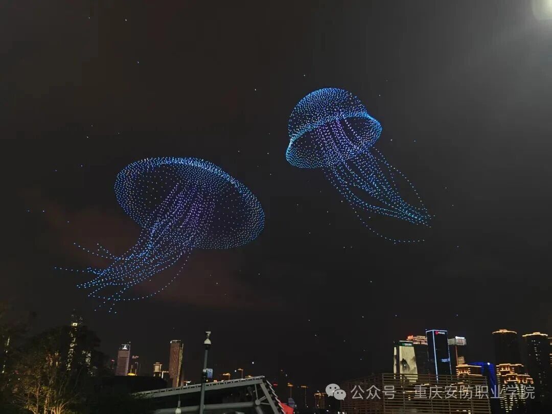 傍晚时分,师生们一同前往重庆地标长嘉汇,观赏了一场精彩绝伦的无人机编队表演。当数百架无人机腾空而起,在夜空中不停的变换画面,现场惊叹声不绝于耳。这不仅是光影的艺术,更是低空技术应用最直观、最富感染力的展现。白天的所有理论学习与产品认知,在这一刻得到了前所未有的升华。