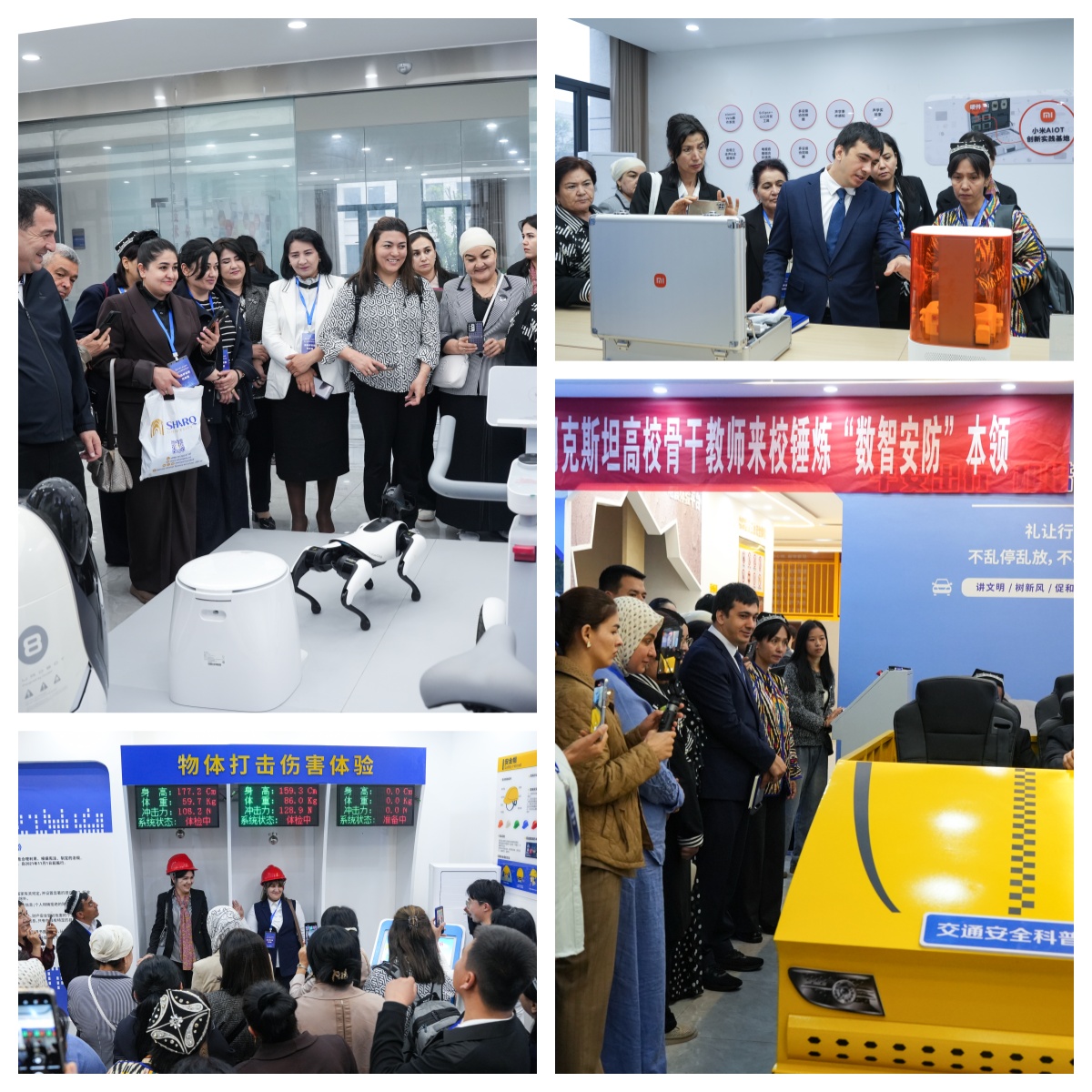 在参观体验环节,学校围绕“数智安防”主题,组织来访的乌兹别克斯坦44名高校教师深入探访多个特色教学场景。参观小米产业学院的小米产品认知实训室与智能家居实训室,沉浸式体验小米“人车家全生态”理念下的全屋智能场景。老师们不仅解锁智能硬件的技术奥秘,更深刻感受到科技赋能生活的无限可能与强大力量。还观摩安防科技馆的高空救援、车辆交通事故体验、HTC行走平台、智慧化救护E站等实战演练。让国际友人切实感受到中国科技赋能应急救护与安全防护的强大力量。