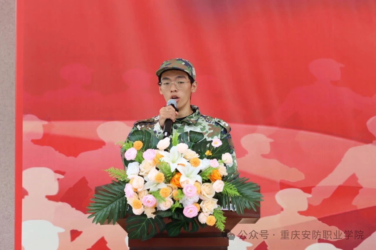 优秀学员代表郭子鑫发言表示,军训不仅锻炼体魄,更塑造了昂扬的生活态度与坚韧的奋斗精神。未来将把铁的纪律、钢的意志和团结精神融入学习生活,践行“忠诚勇毅·精技有为”的校训,担当安防学子的使命。