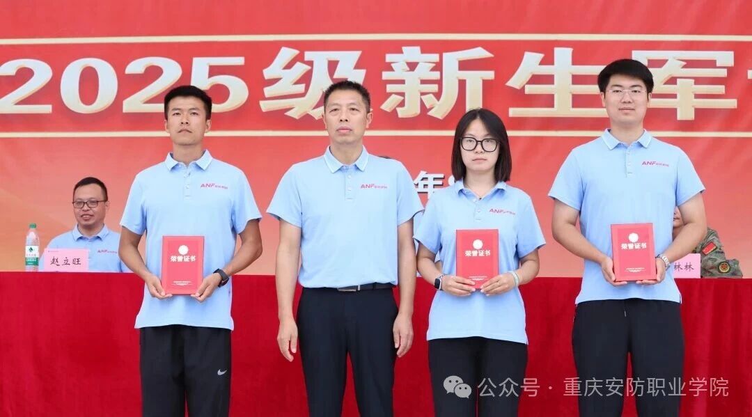 副校长赵立旺宣读了《关于表彰2025级新生军训优秀个人、先进集体的决定》。在激昂的乐曲与全场的掌声中,优秀个人与先进集体代表依次登台,领取这份属于他们的荣誉。