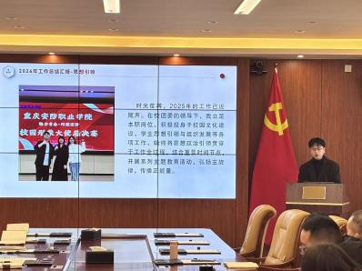 为总结工作经验、凝聚育人合力、提升学工队伍专业化水平,2026年1月7日,学生处牵头召开2025-2026学年第一学期学工队伍述职会议。校长助理徐阳、邬江涛,学生处副处长焦艳、校团委副书记胡倩出席会议,全体学工人员参会并述职。
