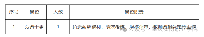 本次面向社会公开招聘劳资干事1名,具体岗位信息详见下表。