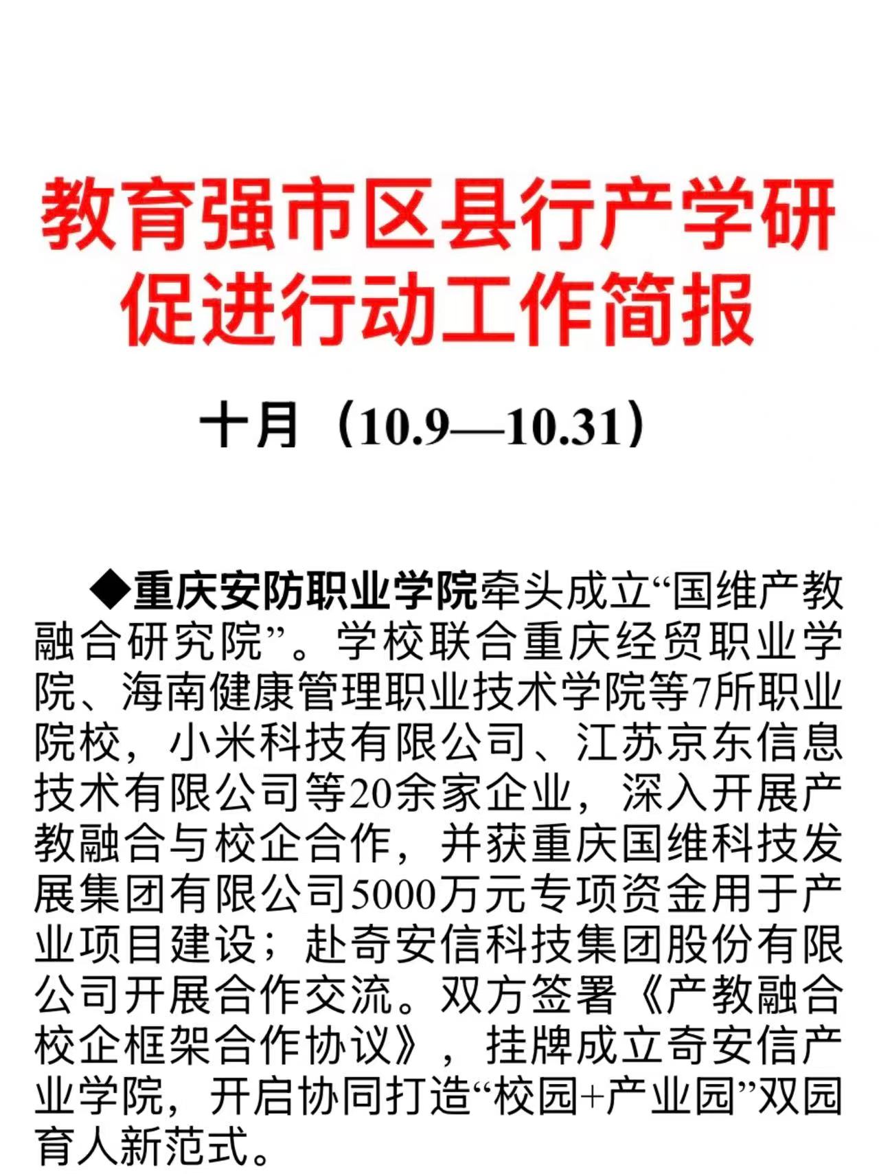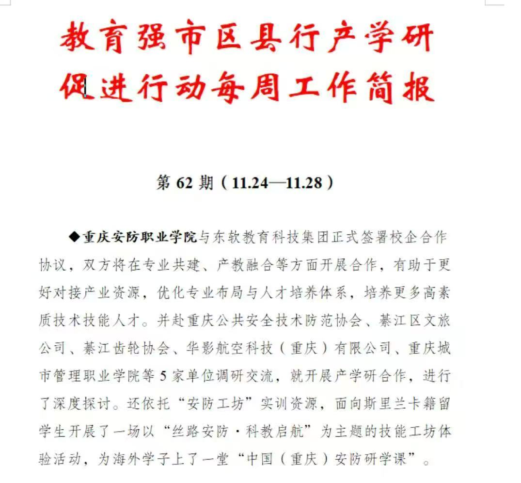 2025年秋季学期,是学校办学元年的第一个学期。在首批学子入学后的四个月时间里,重庆市教委“教育强市区县行产学研促进行动工作简报”,曾3次报道我校产教融合工作进展情况。